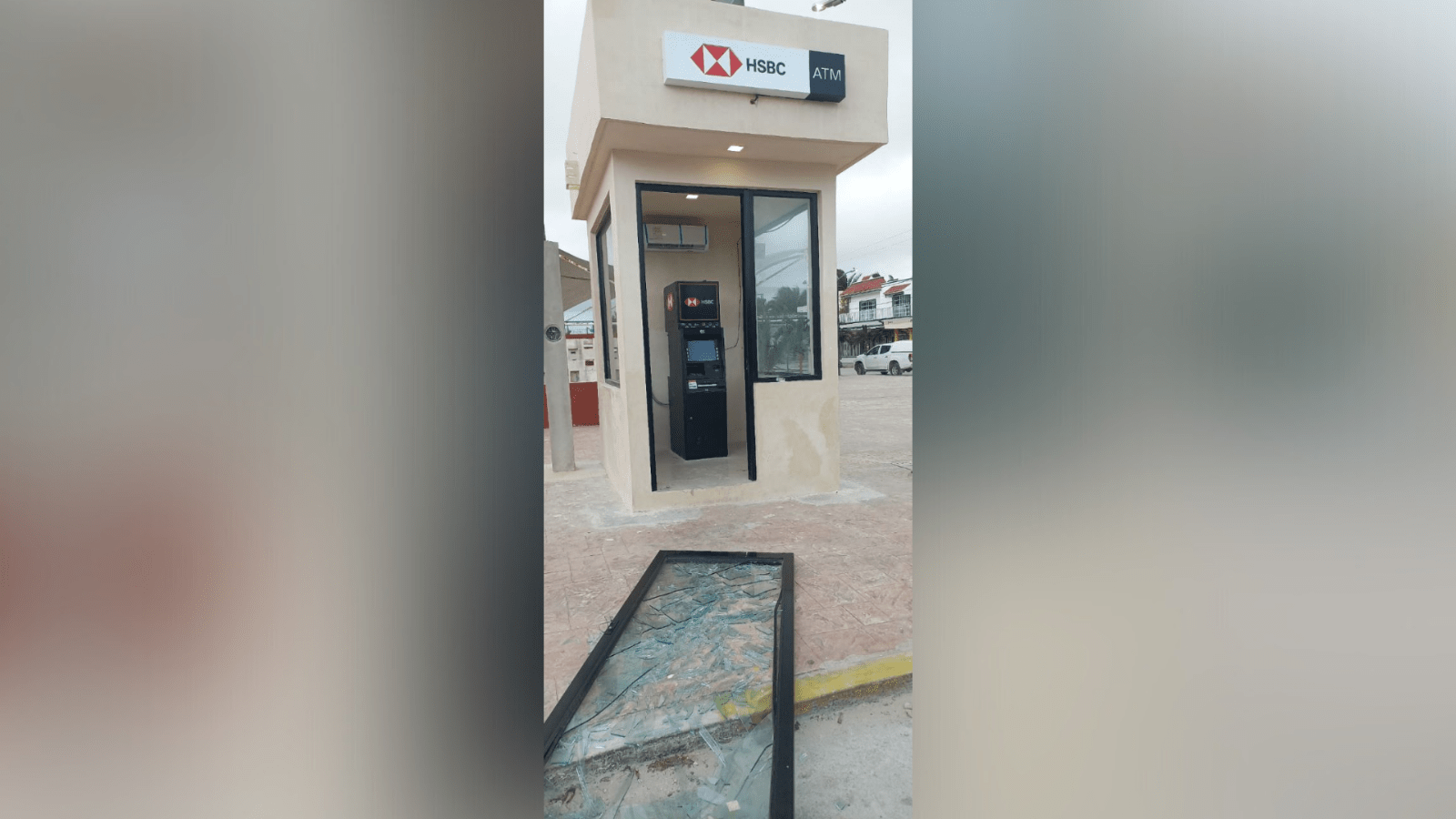 Tras haberse programado la llegada del frente frío número 31 a la península de Yucatán, luego de los primeros minutos de comenzarse a sentir las rachas de viento en el puerto de La Cuyo, la puerta de cristal del cajero automático del banco HSB, resulto con daños pues se desprendió de su base y cayo quedando reventado todo el vidrio.