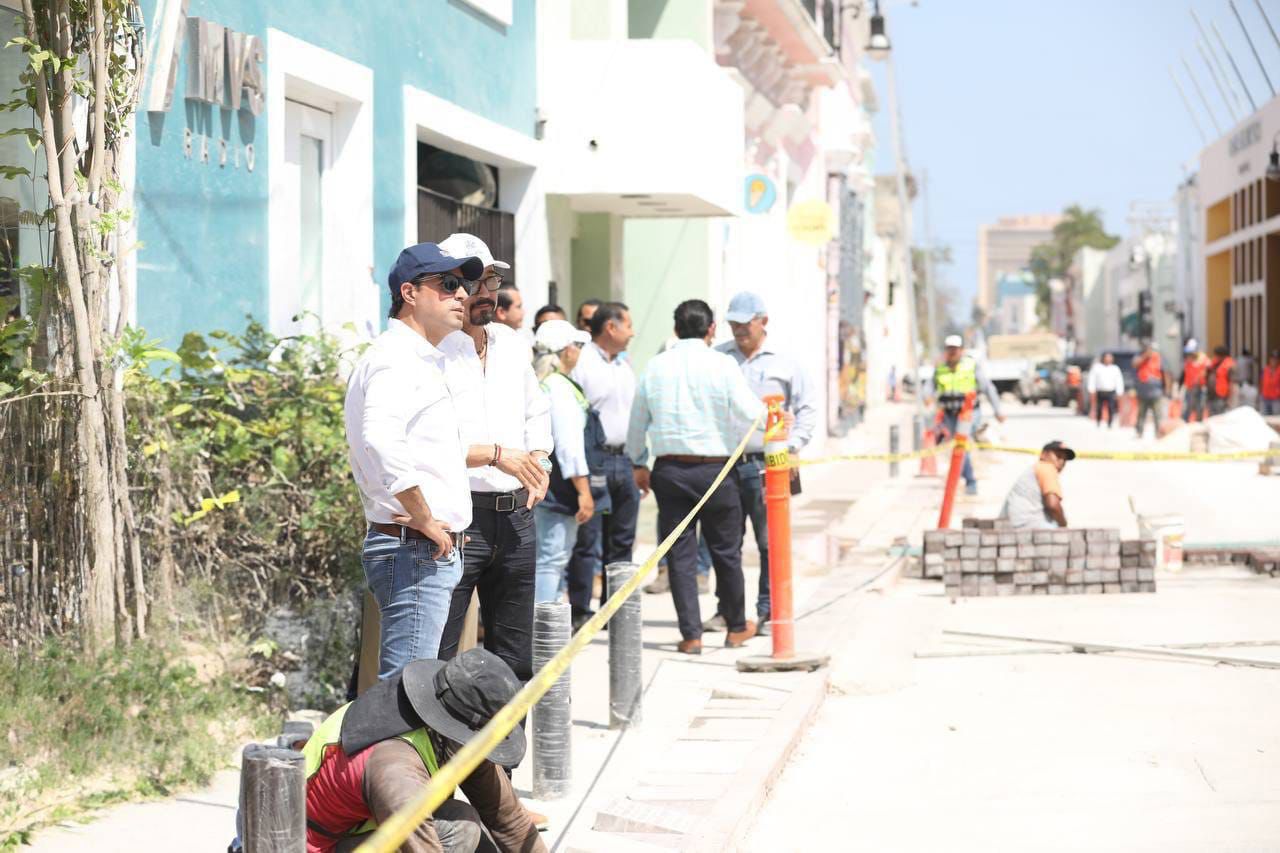 El Gobernador Mauricio Vila Dosal realizó un nuevo recorrido de supervisión sobre la calle 60, donde se realizan los trabajos de construcción del Corredor Turístico y Gastronómico, los cuales avanzan a buen ritmo conforme a lo programado y próximamente estarán listos para renovar la imagen del Centro Histórico de la capital y, con ello, detonar el turismo y la economía de la zona.