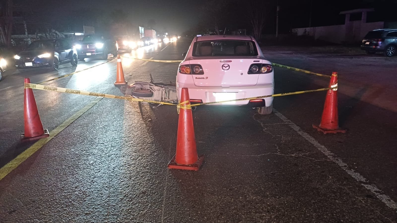 Un motociclista falleció luego de ser atropellado por un automóvil sobre la carretera Mérida-Tixkokob a la altura del fraccionamiento Villas de Oriente.
