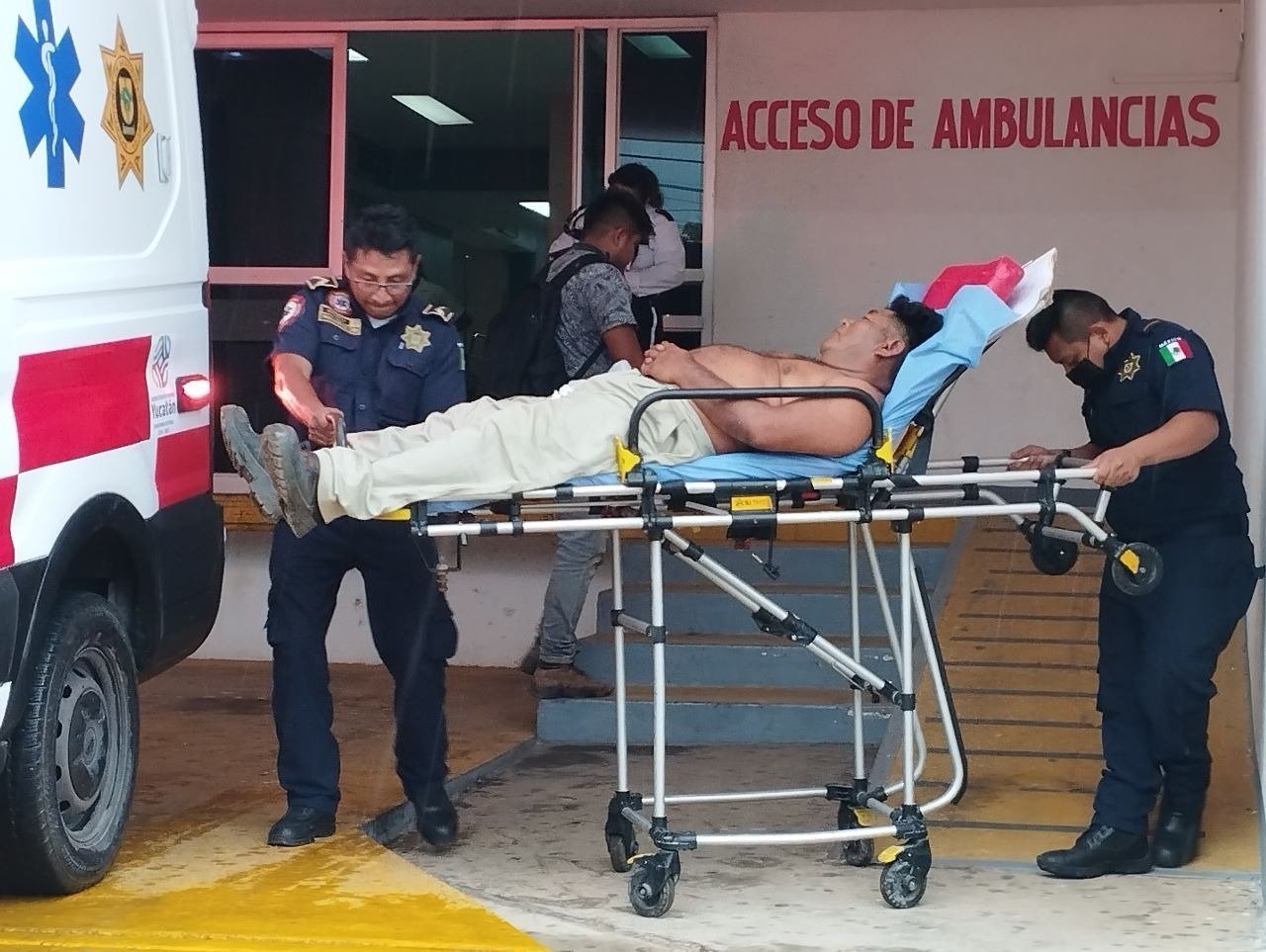 De manera rápida el hombre fue abordado en una camioneta de color blanca para su traslado al consultorio médico en la comisaria de Colonia Yucatán en donde fue atendido por el doctor Miguel Ángel Acosta Félix quien lo estabilizó y procedió a canalizarlo, pero su estado de salud era preocupante, por lo que el galeno pidió el apoyo de la policía, ya que requería de traslado a un hospital.