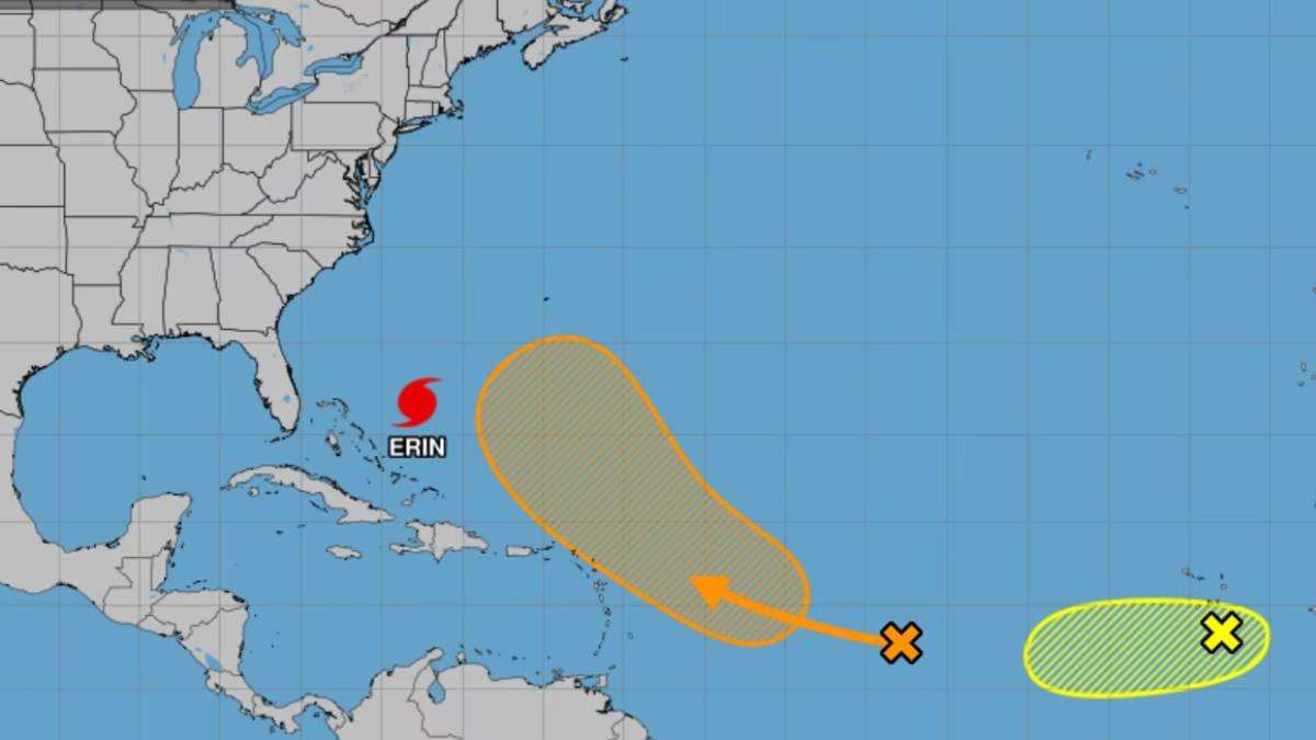 “En la trayectoria del pronóstico, el centro de Erin pasará al este de las Bahamas esta noche, y luego se moverá sobre el Atlántico occidental entre la costa este de los Estados Unidos y las Bermudas el miércoles y el jueves”, precisó el aviso.