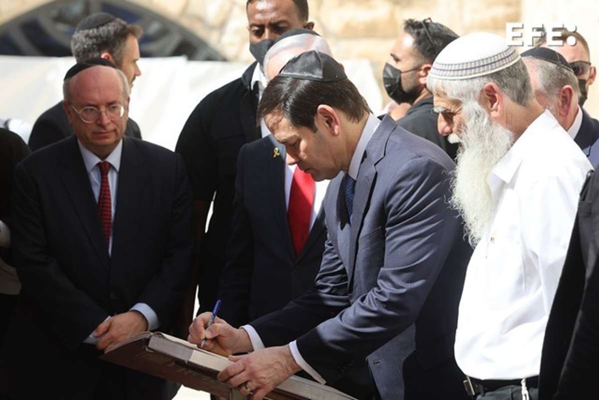 Antes, los tres rezaron juntos en el Muro de las Lamentaciones, el lugar más sagrado para el judaísmo, y Rubio lo hizo portando una kipá en la cabeza, tras lo que metieron entre las piedras de la pared sus respectivas notas en papel, siguiendo la tradición judía por la que se anotan allí oraciones, deseos o sueños.