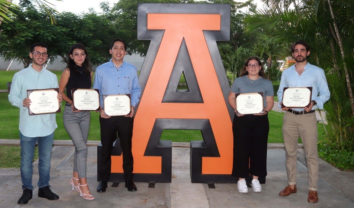 Esta primera generación está conformada por cinco nuevos profesionistas: Alejandra Arceo Moguel, María Pérez Cuesta, Óscar Gáber Dorbecker y Mauricio Estrada Barrera, todos de la Licenciatura en Negocios Internacionales.