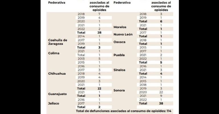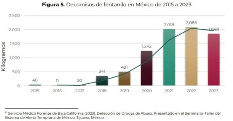 En 2023, se registraron 430 casos de atención por consumo de fentanilo en México, concentrados principalmente en estados del norte como Baja California, Chihuahua, Sinaloa, y Sonora.