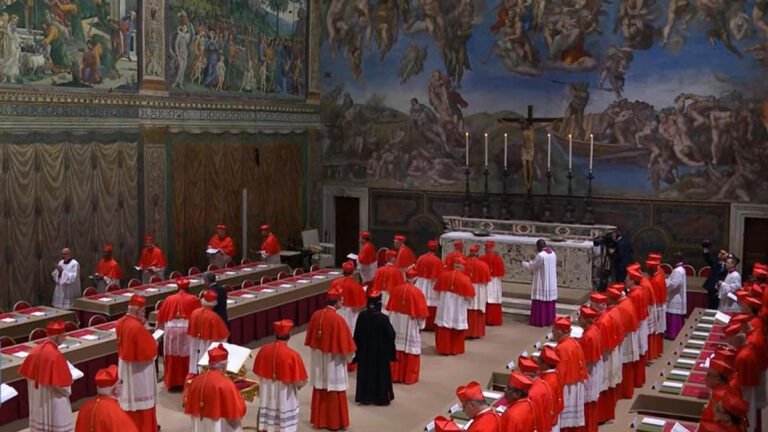 En su interior quedaron los purpurados electores con el predicador capuchino Raniero Cantalamessa, que será el encargado de pronunciar una meditación antes de salir de la capilla y dejarlos solos.