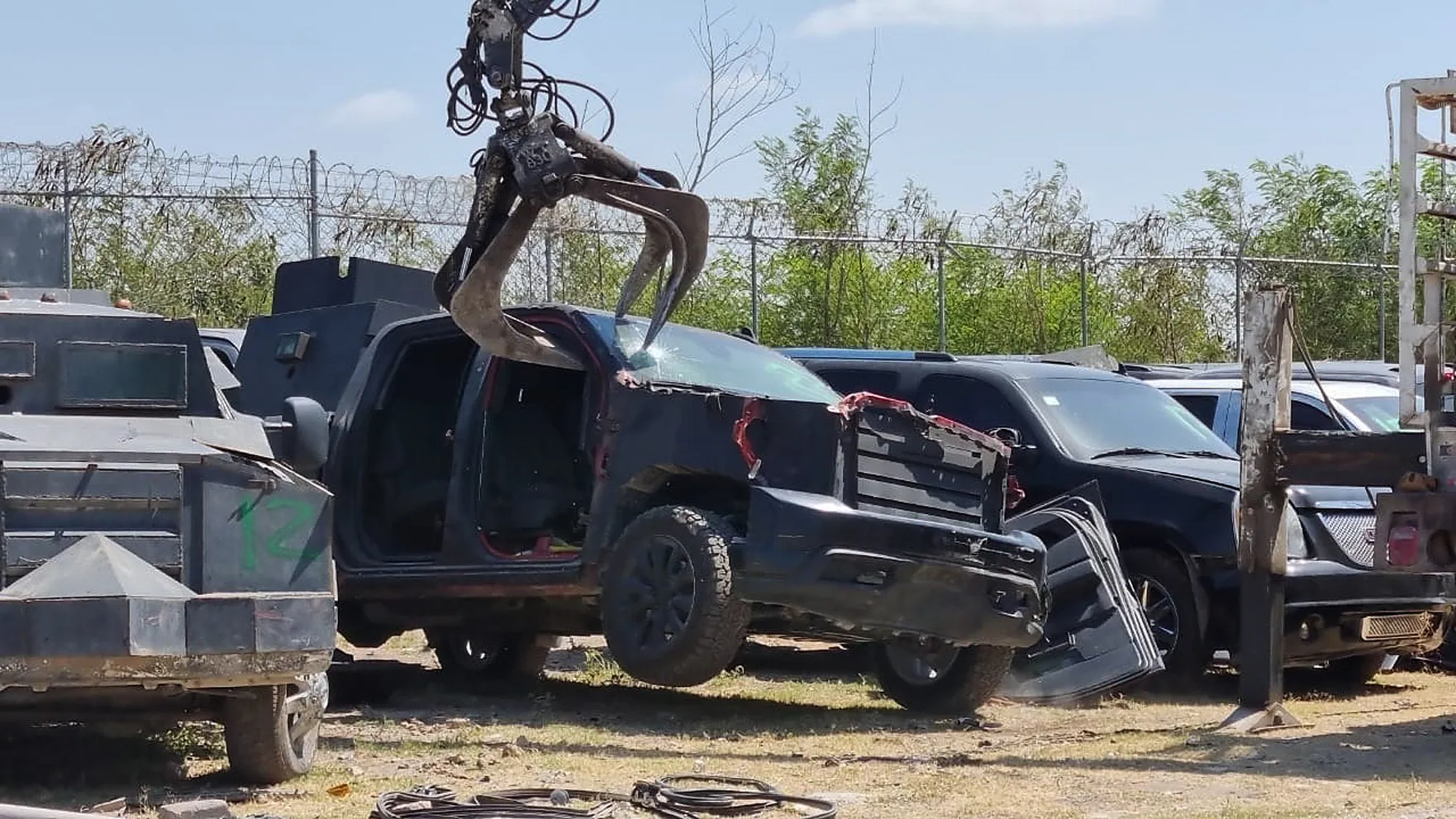 La destrucción de los vehículos con blindaje artesanal se llevó a cabo en las instalaciones de la FGR ubicada en la ciudad de Reynosa