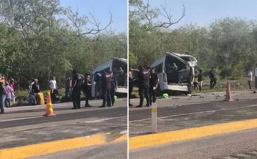 De acuerdo con información preliminar, un grupo de albañiles que se dirigía a trabajar en una Van a Mérida, sufrió un aparatoso percance alrededor de las 6:40 horas.