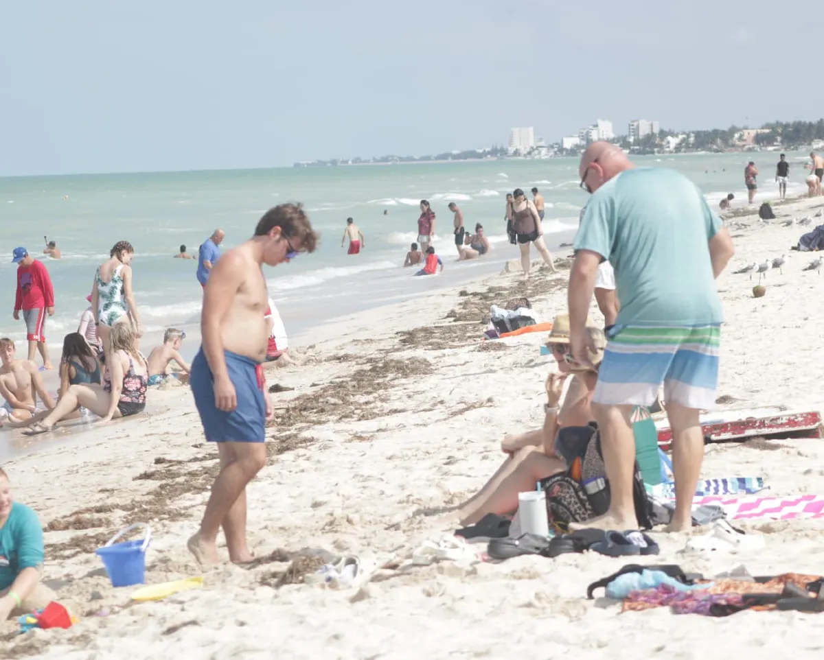 Grupos de turistas ocuparon palapas y sombrillas en la playa, donde consumieron platillos de los restaurantes y se refrescaron con bebidas, como agua de coco y cervezas.