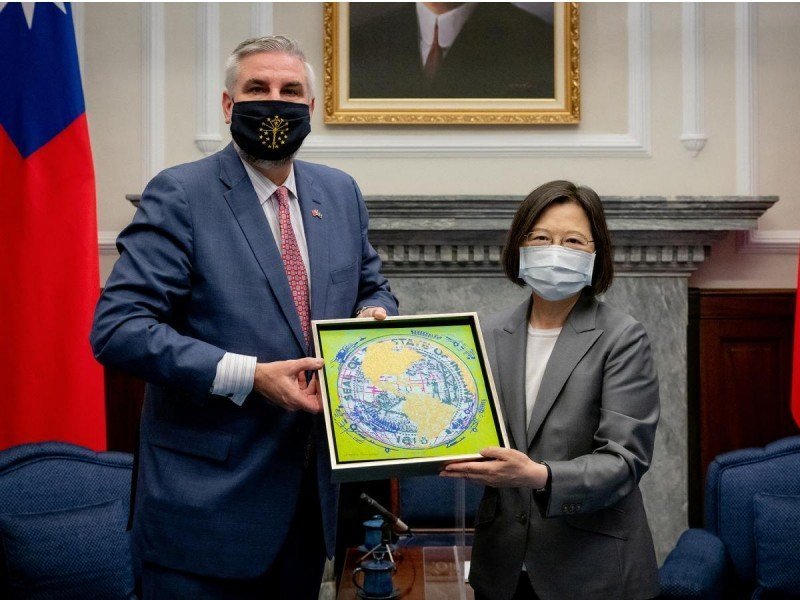 En el encuentro con Holcomb, la presidenta taiwanesa Tsai Ing-wen comentó los ejercicios chinos y pidió a países democráticos seguir apoyando a Taiwán.