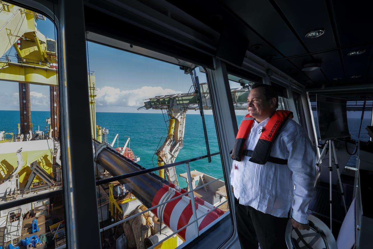 El Gobernador Joaquín Díaz Mena encabezó una visita de supervisión al buque draga Fernando de Magallanes, una de las embarcaciones de dragado más modernas y potentes en operación, que realiza las maniobras de ampliación y modernización del Puerto de Altura de Progreso, proyecto estratégico para el desarrollo de Yucatán y pieza clave del Renacimiento Maya.