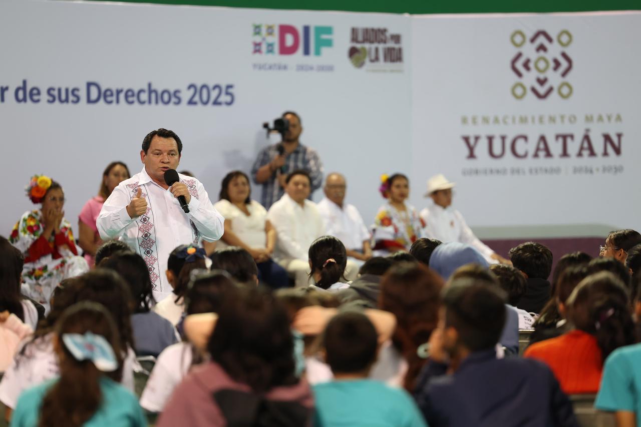 Asimismo, y en presencia de la directora general del DIF Yucatán, Shirley Castillo Sánchez, el mandatario invitó a las niñas, niños y adolescentes a convertirse en ejemplo para otros y a nunca rendirse, incluso ante las adversidades.