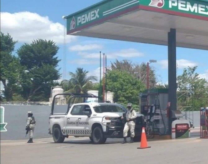 Personal del Ejército Mexicano y la Guardia Nacional clausuraron las instalaciones de una gasolinera ubicada en la calle 28 entre 25 y 23 del Centro de la ciudad de Motul, en el estacionamiento de conocida plaza comercial.