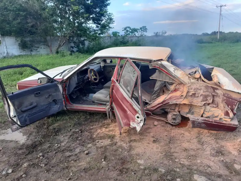 Un auto fue incendiado y abandonado a un costado de la carretera antigua federal Mérida -Campeche, en el tramo de la comisaría de Póxila; donde fue hallado por vecinos que reportaron el hecho a los servicios de emergencia.