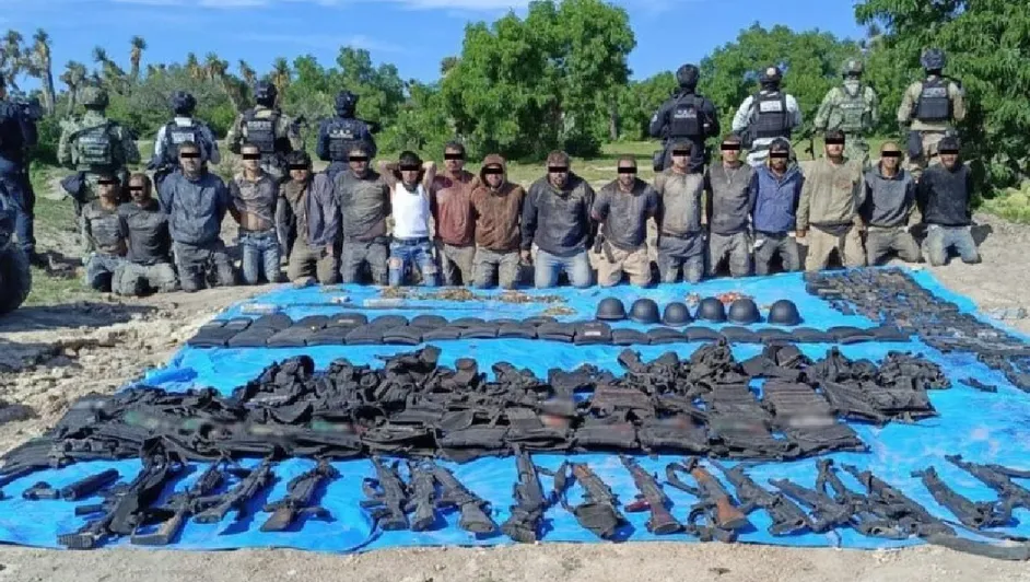 “Para salvaguardar la integridad de los habitantes de la región, los agentes de seguridad implementaron diferentes técnicas y tácticas operativas”, que además de permitir la detención de participantes en el bloqueo, lograron el decomiso de 20 armas de fuego, un aditamento lanzagranadas, 28 chalecos tácticos, cascos, cargadores, cartuchos y fornituras, además de un kilo de polvo blanco.