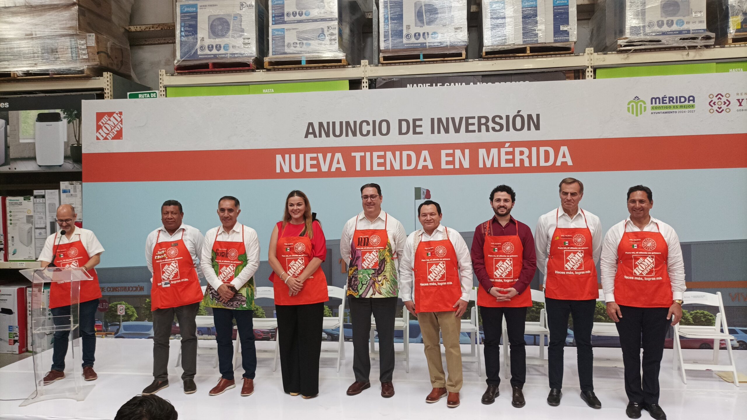 Desde la tienda de Home Depot Montejo de Mérida, el gobernador Joaquín Díaz Mena y la presidenta municipal Cecilia Patrón se anunció está importante inversión en el sector del sureste mexicano debido a la certeza y seguridad de las inversiones en el estado.