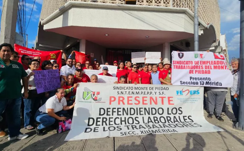 Los Trabajadores del Nacional Monte de Piedad (NMP) pertenecientes a la sección 13 del sindicato, iniciaron el paro el 1 de octubre de 2025; ayer se manifestaron a las puertas de la sucursal principal en Mérida, de esta empresa ubicada en la calle 69 esquina con 58, en el Centro Histórico de la ciudad, para reafirmar su postura ante el conflicto laboral que enfrentan y asegurar que no darán marcha atrás hasta que se cumpla lo establecido en el contrato colectivo de trabajo.