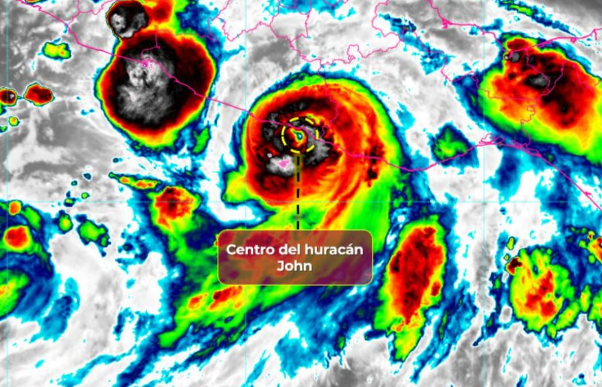 Tras su paso por las costas de Guerrero, el huracán John se debilita pero sigue avanzando sobre tierra firme