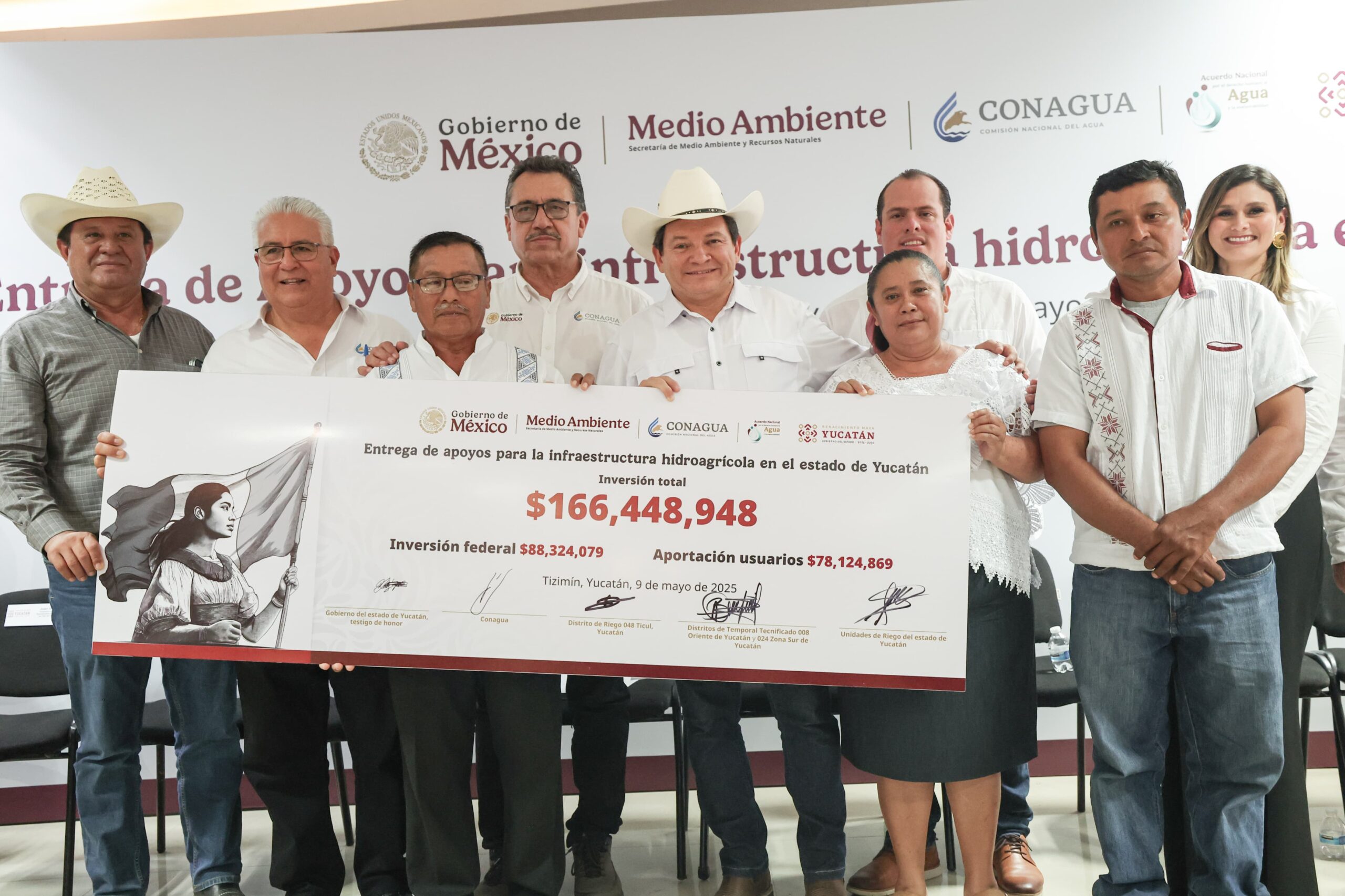 En Tizimín, el mandatario estatal y el subdirector de Infraestructura Hidroagrícola de la Comisión Nacional del Agua (Conagua), Aarón Mastache Mondragón, dotaron de este respaldo histórico que redundará en la mejora de más de 7,000 hectáreas, a través de la rehabilitación, tecnificación y equipamiento de la tierra.