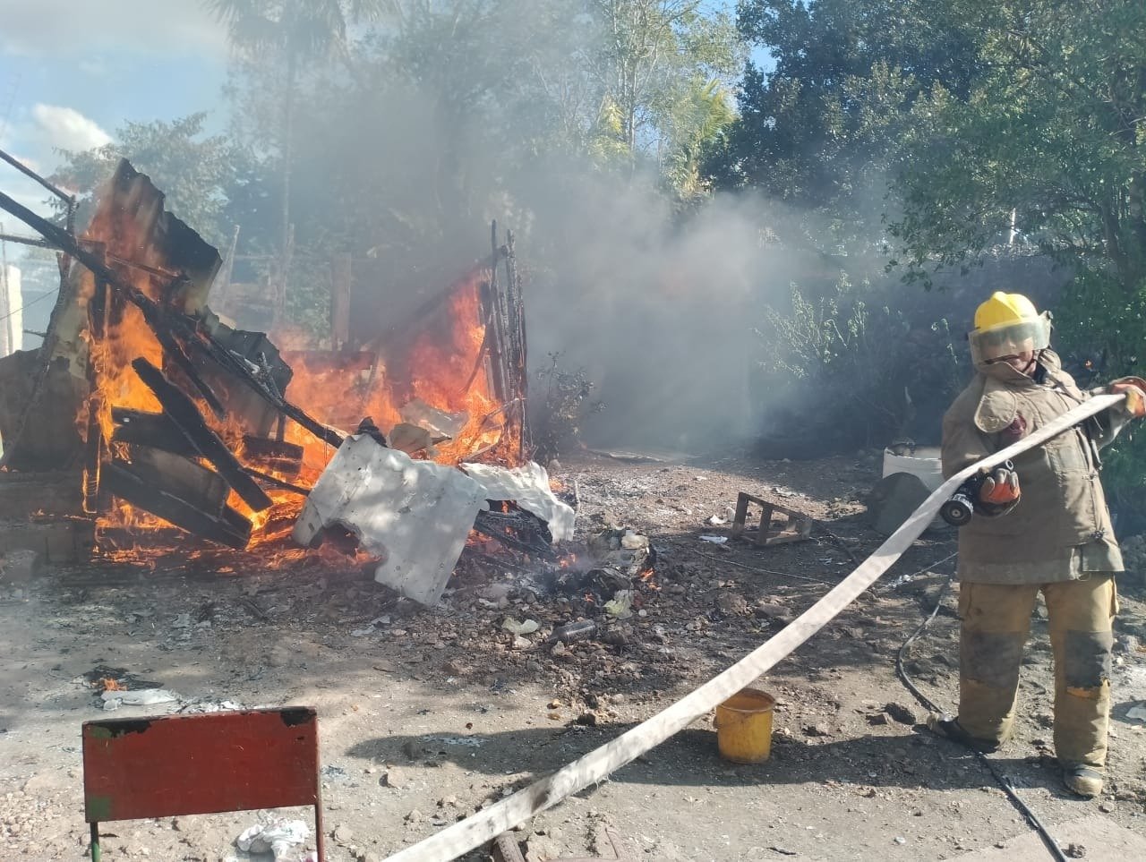Poco tiempo después llegaron las unidades 853 y 853 de los bomberos del CISP Tizimín quienes se cercioraron de que el fuego fuera exterminado por completo, así como también sacaron un tanque de gas de 10 kilogramos de las llamas para evitar que explotaran, todo lo que había en el interior de la cocina fue reducido a cenizas.