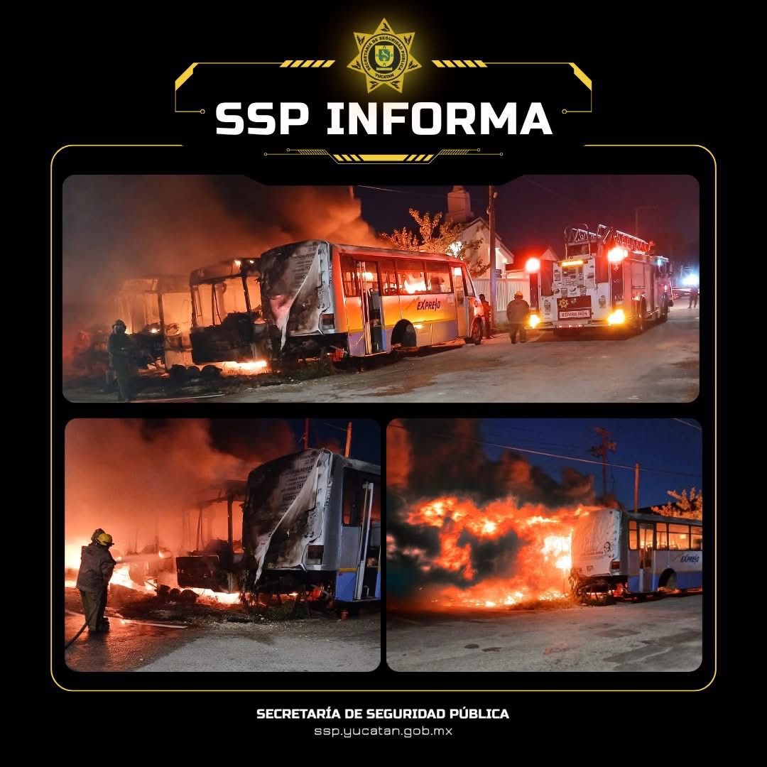 Un incendio afectó varios minibuses abandonados en la colonia Sambulá, en el municipio de Mérida, tras un reporte ciudadano que movilizó a cuerpos de emergencia en la zona.