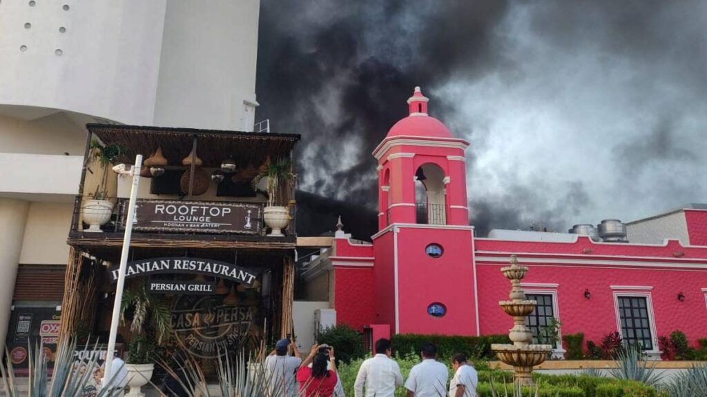 En la mañana del viernes 30 de junio, un incendio se desató en el ‘Hotel Krystal’, situado detrás del famoso restaurante ‘El Mortero’, en la animada área de discotecas de la zona hotelera de Cancún.