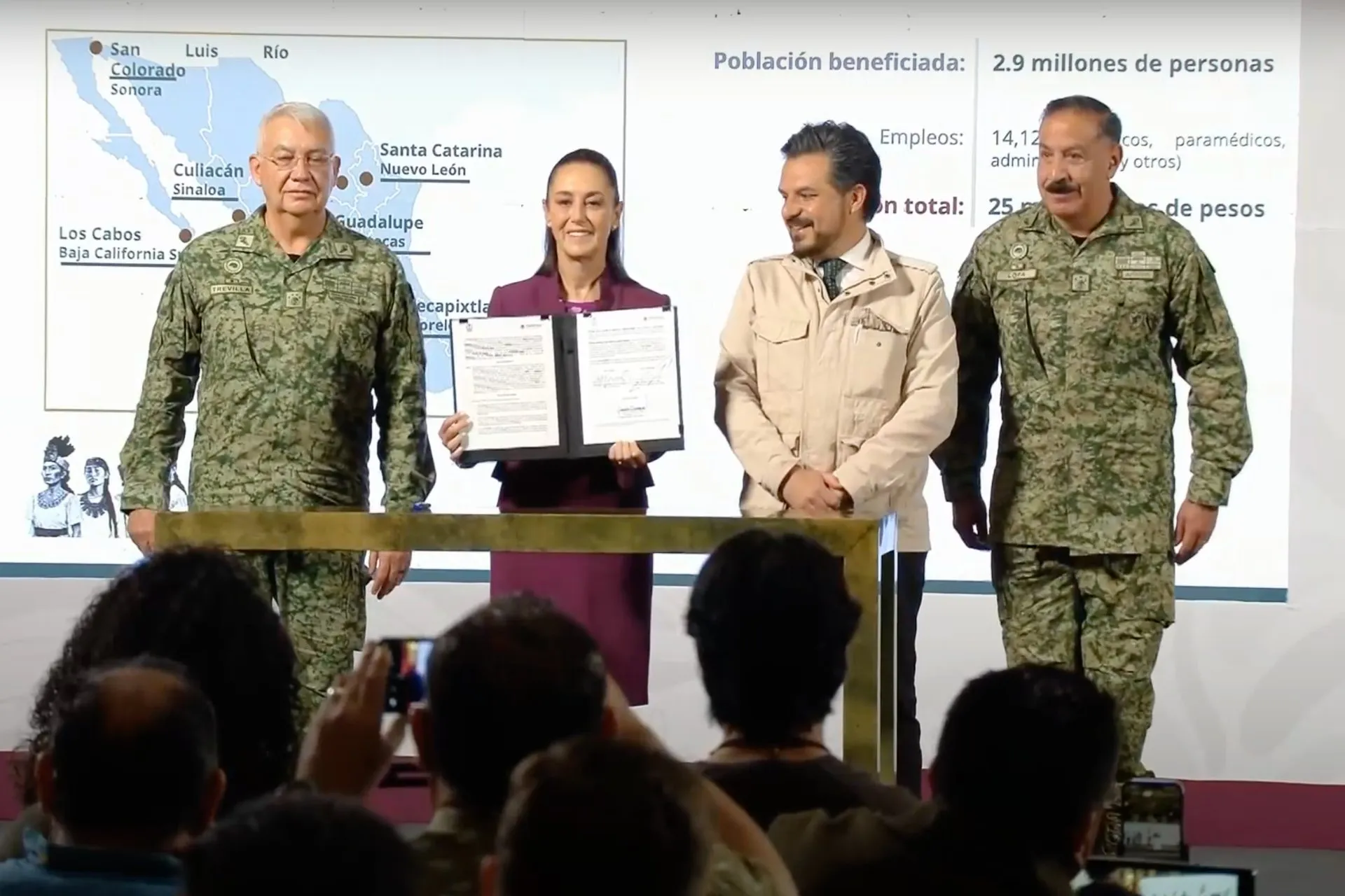 “Vamos a firmar un convenio muy importante entre el IMSS y la Secretaría de la Defensa Nacional porque los ingenieros militares van a construir los hospitales del IMSS”, destacó la presidenta Claudia Sheinbaum Pardo en la conferencia matutina de Palacio Nacional