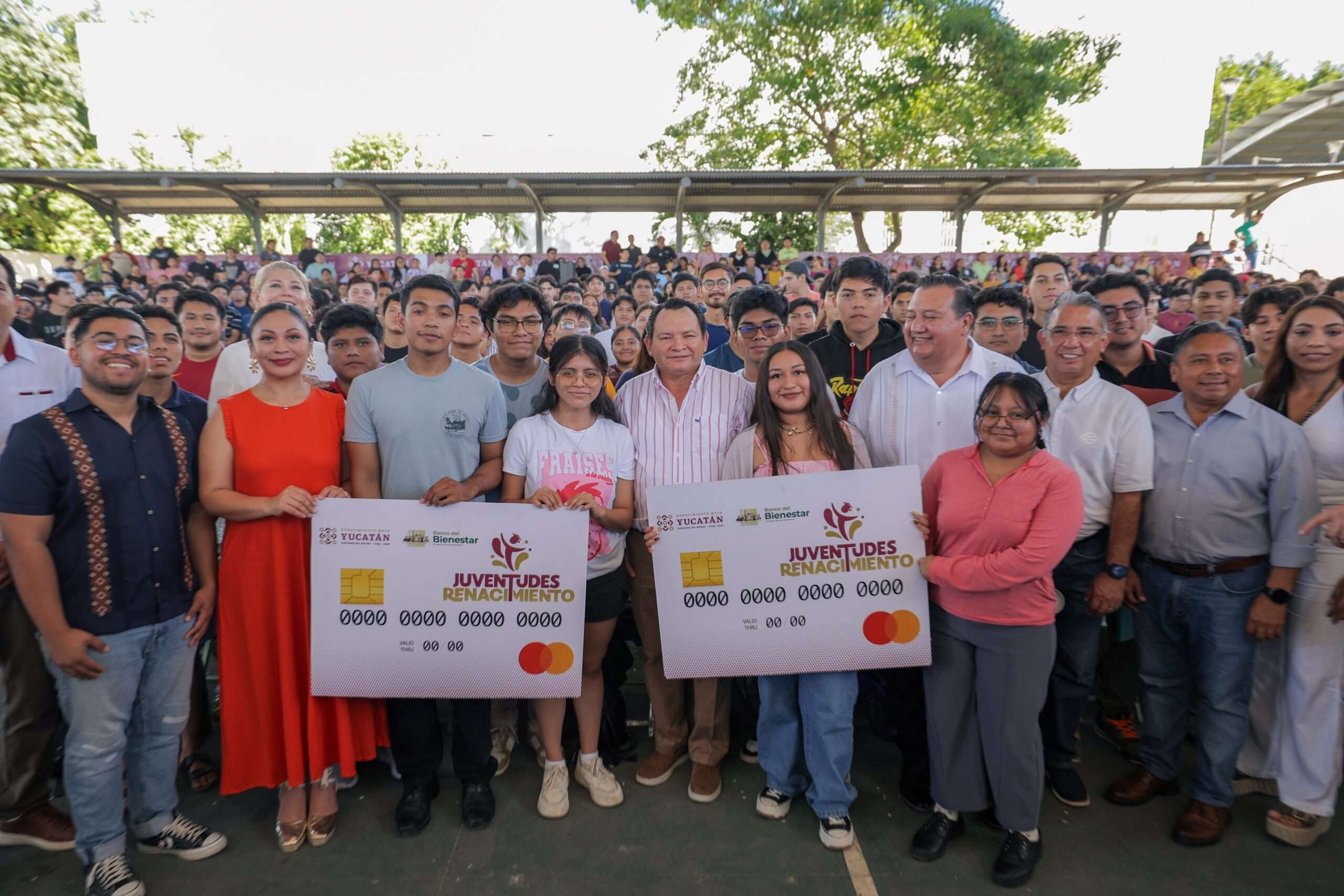 En este sentido, el Gobernador hizo un recuento de las dificultades que tuvo que atravesar cuando fue estudiante, por lo que esta iniciativa —dijo— tiene el objetivo de que las y los jóvenes puedan dedicarse de tiempo completo a prepararse y obtener más conocimientos para que, cuando egresen, aprovechen las oportunidades de empleo que se están creando con el proyecto Renacimiento Maya, que incluye obras como la modernización del Puerto de Altura de Progreso, el Tren Maya de carga que irá de Umán a Progreso, el Anillo Metropolitano y los Parques Industriales del Bienestar, entre otras.