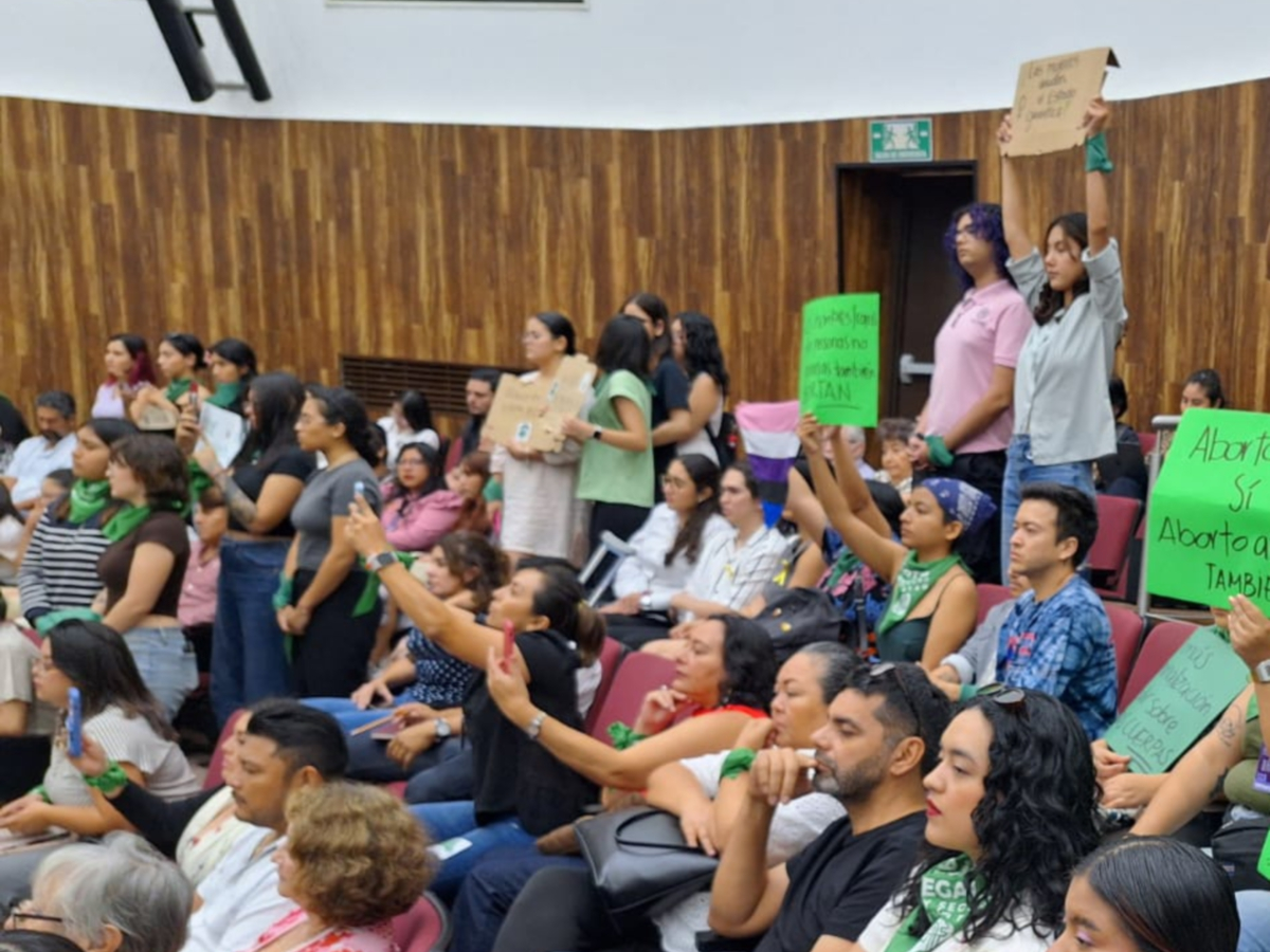 Otro de los temas que reunió en el Congreso a numerosas mujeres de diferentes colectivos y partidos, principalmente de Morena y Movimiento Ciudadano, quienes portaban pañoletas verdes con leyendas en alusión al aborto, fueron las iniciativas presentadas por Clara Paola Rosales Montiel, diputada morenista, y Larisa Acosta Escalante, de MC, para despenalizar el aborto.