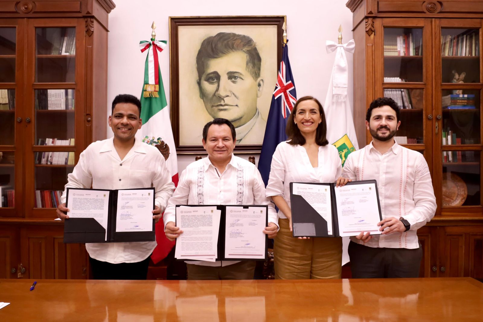 Por parte del Gobierno, también firmaron los titulares de las Secretarías de Fomento Económico y Trabajo (Sefoet), Jorge Ermilo Barrera Novelo, y de Investigación, Innovación y Educación Superior (Siies), Geovanna Campos Vázquez.