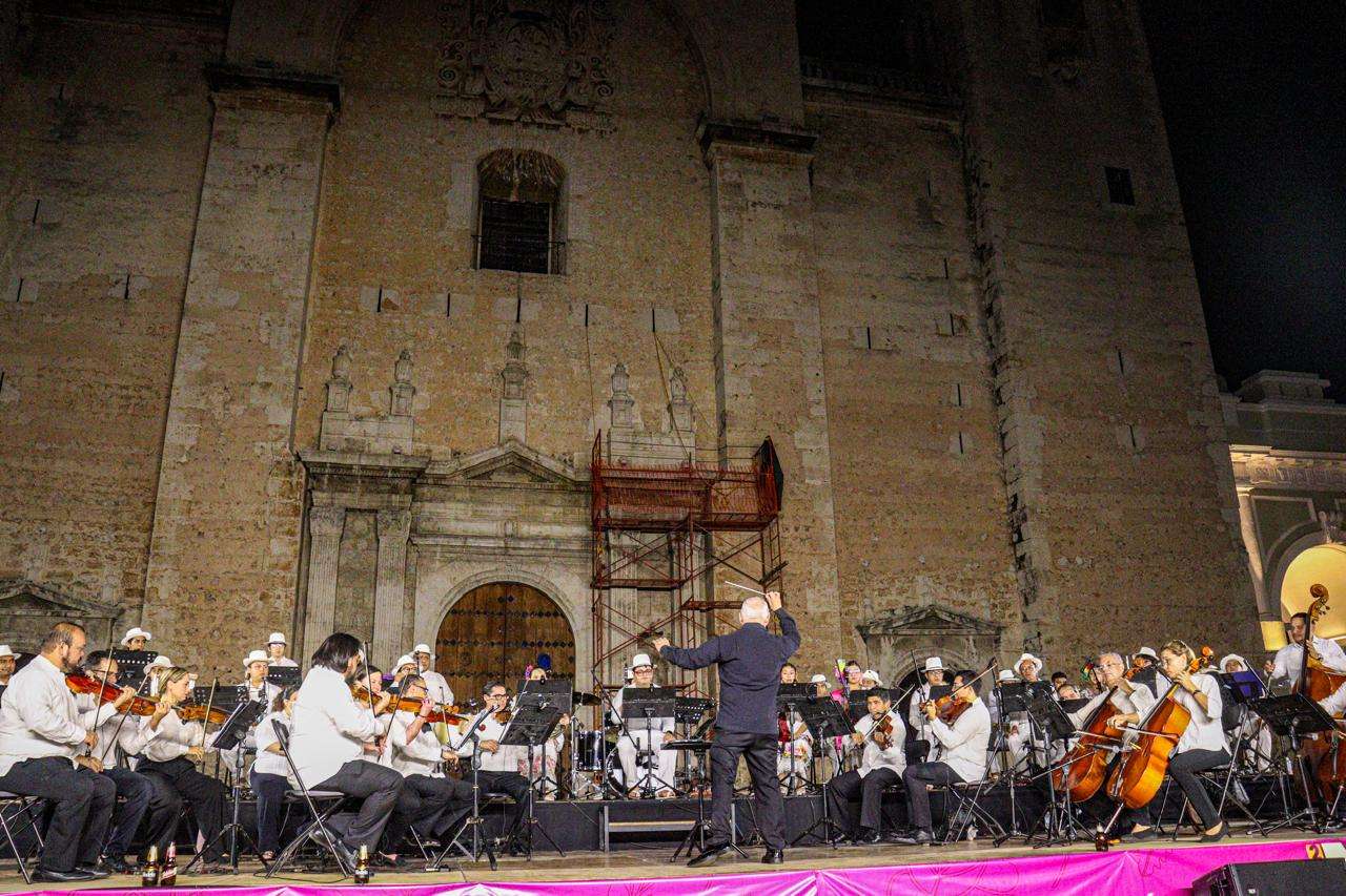 Los ritmos de la jarana yucateca atraparon a meridanas, meridanos y turistas en una noche sinfónica y llena de tradiciones con la Orquesta de Cámara de Mérida y la Orquesta Típica de la Universidad Autónoma de Yucatán.