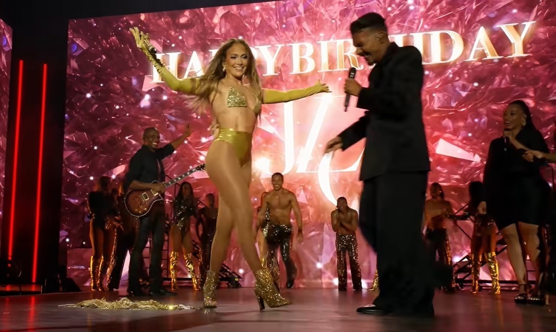Para marcar la fecha, Jennifer Lopez lanzó una nueva canción titulada “Birthday”, y fue agasajada con una imponente torta de tres pisos mientras celebraba con sus músicos y bailarines en el backstage.