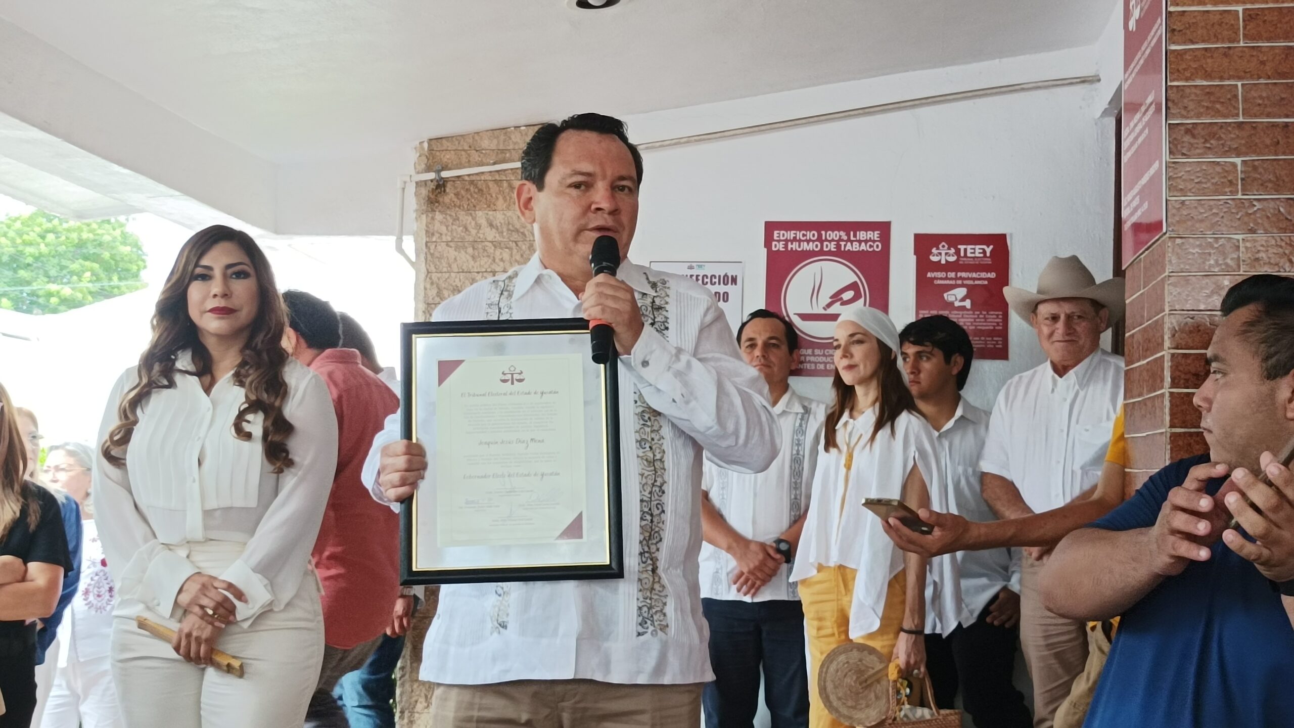Joaquín Díaz Mena recibe la constancia de validez que lo acredita como el próximo Gobernador de Yucatán
