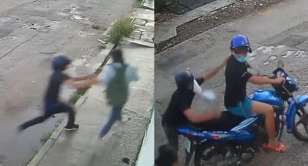 📹 #Entérate | Las cámaras de seguridad de una vivienda grabaron el momento exacto en el que dos hombres intentaron asaltar a un joven que se dirigía a la escuela; sucedió en Vergel 2 de #Mérida 🔴