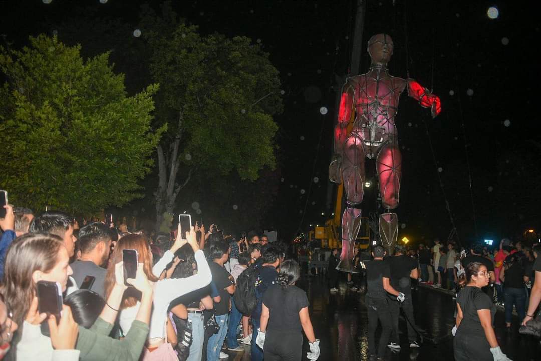 En ese mismo escenario, el Pasaje de la Revolución, se presentó el espectáculo Noosfera Fire Land, animación y malabares con fuego.
