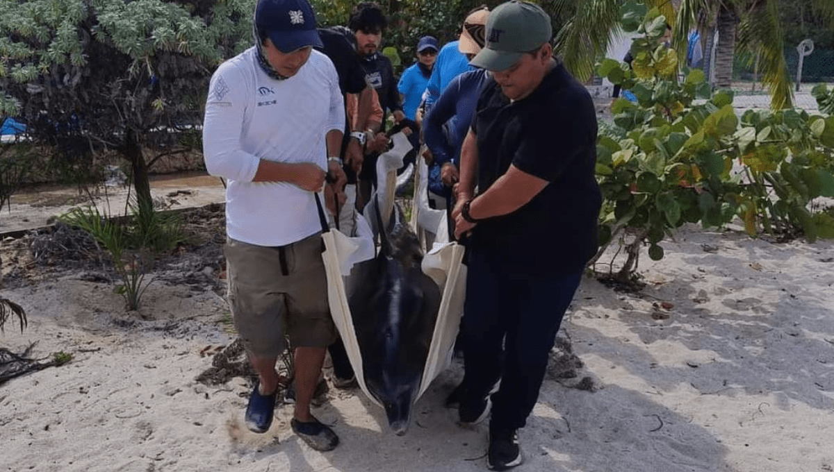 Tras el reporte que se tuvo por parte de los lugareños que acostumbran salir a realizar sus actividades a temprana hora en la playa, se percataron de lo ocurrido, en donde emitieron aviso a las autoridades, en donde la presencia del personal de la Procuraduría Federal de Protección al Medio Ambiente (PROFEPA) la Secretaría de Desarrollo Sustentable (SDS), PICMMY y la policía municipal, mismos que se encargaron de atender el caso.