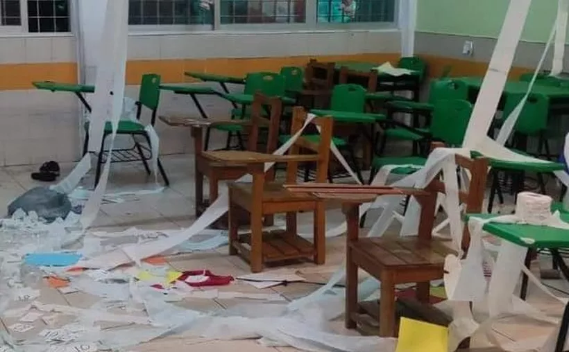 Este lunes cuando llegaron las madres, padres, alumnos y maestras se llevaron la triste sorpresa de encontrar los salones en un enorme caos, pues destruyeron material escolar y mobiliario.