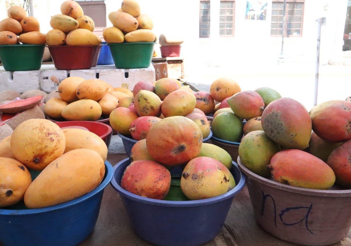 Una pintoresca imagen en tonalidades naranjas, verdes y rojas se puede mirar en los mercados Lucas de Gálvez y San Benito, donde las frutas de temporada como mangos, mamey, ciruela, huaya, limón dulce y china lima inundan las pupilas de colores.