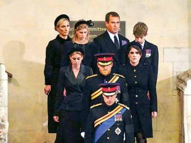 Los ocho nietos de Isabel II, entre ellos los príncipes Guillermo y Enrique, velaron juntos el féretro de la difunta reina.