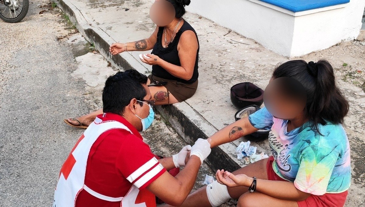 Vecinos solicitaron auxilio a las autoridades. Además, las ayudaron a sentarse a un lado de la calle. Llegaron agentes de la Policía Municipal, quienes encontraron una moto Italika de color rojo con blanco, que manejaba Dianely Berenice Hau Pech, de 18 años de edad. Informó que llevaba a su madre, María Candelaria Pech Chan, de 40 años.