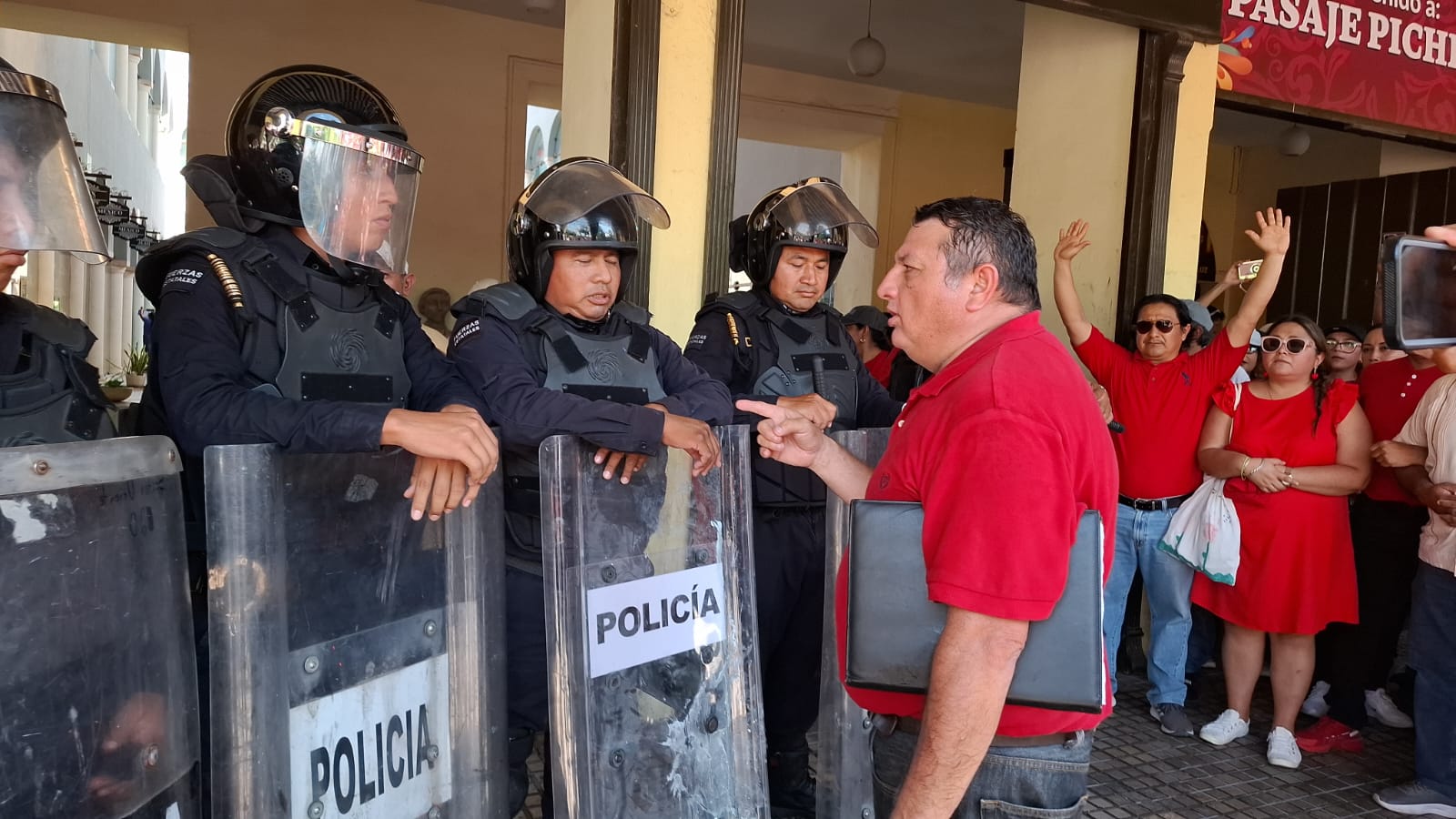 Luego de un intento de comunicarse con las autoridades estatales y no de recibir una respuesta satisfactoria los maestros intentaron entrar al Palacio de Gobierno por sus propios medios.