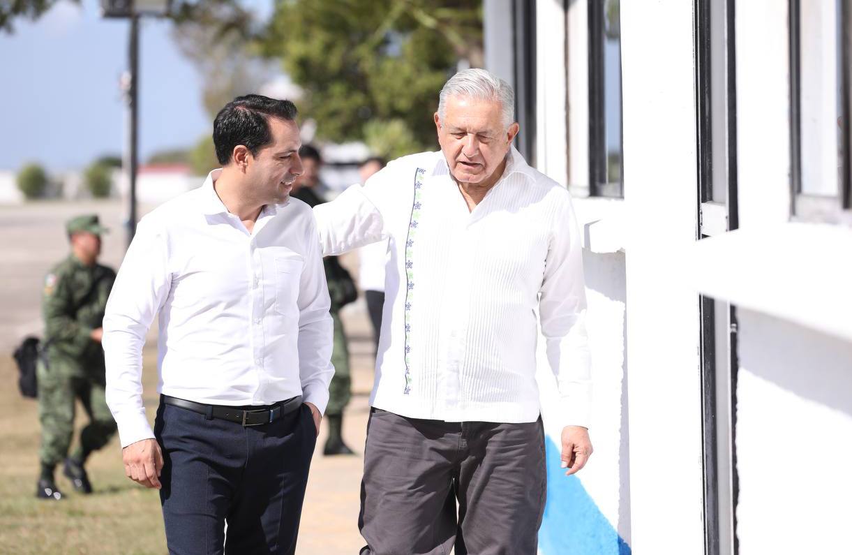 En su segunda reunión en lo que va de este año, el Gobernador y el Presidente revisaron el estado que guardan las obras de construcción de los tramos 2 Escárcega-Calkiní y 3 Calkiní-Izamal del Tren Maya, así como del gran parque de «La Plancha», la ampliación del puerto de altura de Progreso, el Hospital General de la zona Ticul y la construcción de las 2 plantas de generación de energía eléctrica de ciclo combinado.