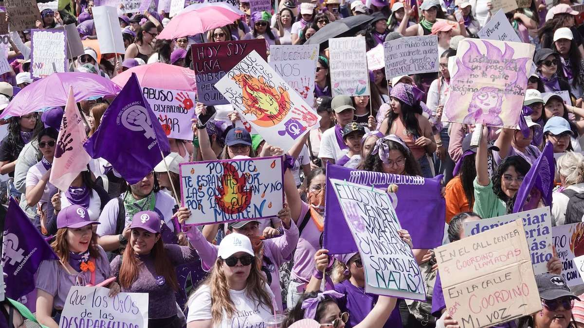 En el marco del Día Internacional de la Mujer, que se conmemora cada 8 de marzo, más de 120 mil mujeres se congregaron en puntos como el Ángel de la Independencia y el Monumento a la Revolución, para avanzar hacia el Zócalo al grito de “señor, señora, no sea indiferente, se mata a las mujeres en la cara de la gente” y “no estás sola”.