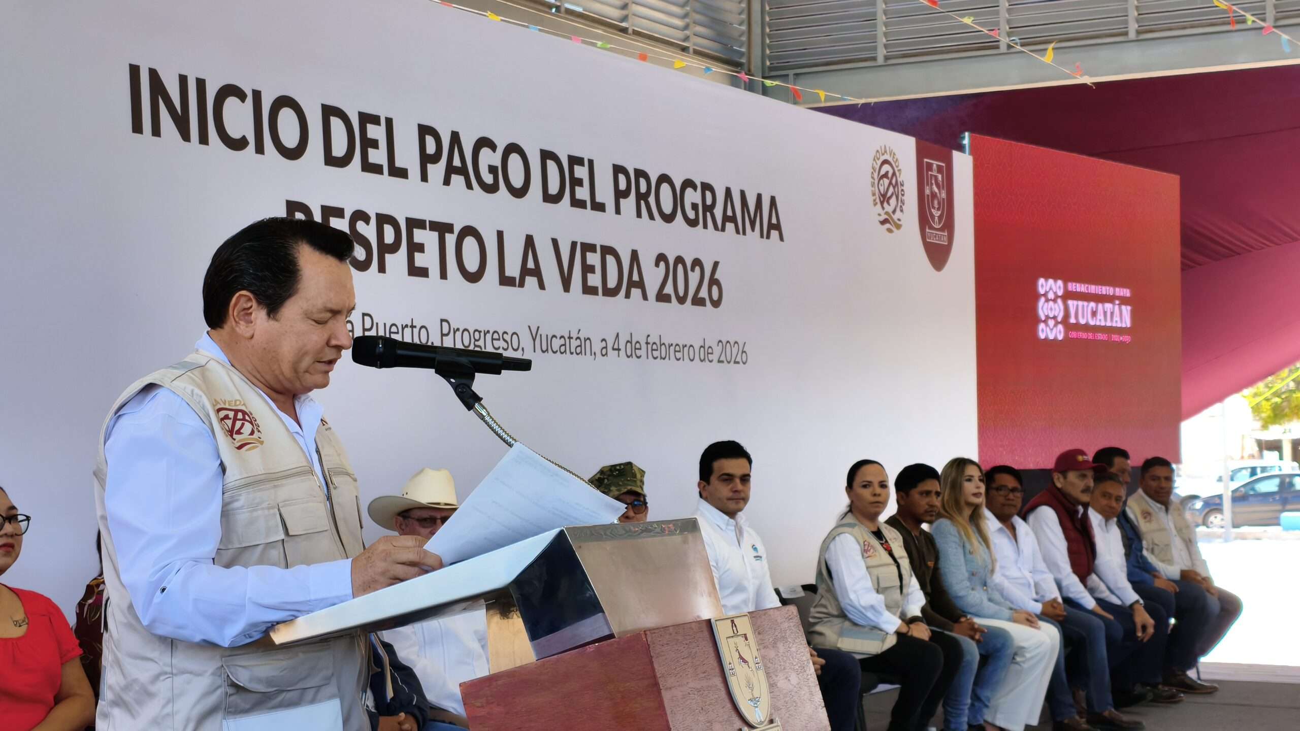 Desde la Chuburná Puerto, el Gobernador Joaquín Díaz Mena dio inicio a la entrega a este beneficio que dará respaldo a 12,790 pescadores de diferentes municipios costeros del Estado.