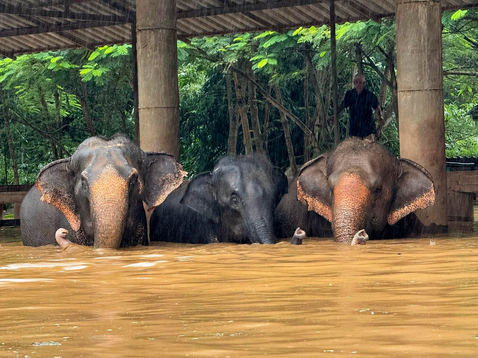 El Parque Natural de Elefantes en Tailandia se inundó, provocando afectaciones a paquidermos, perros, gatos, conejos y búfalos