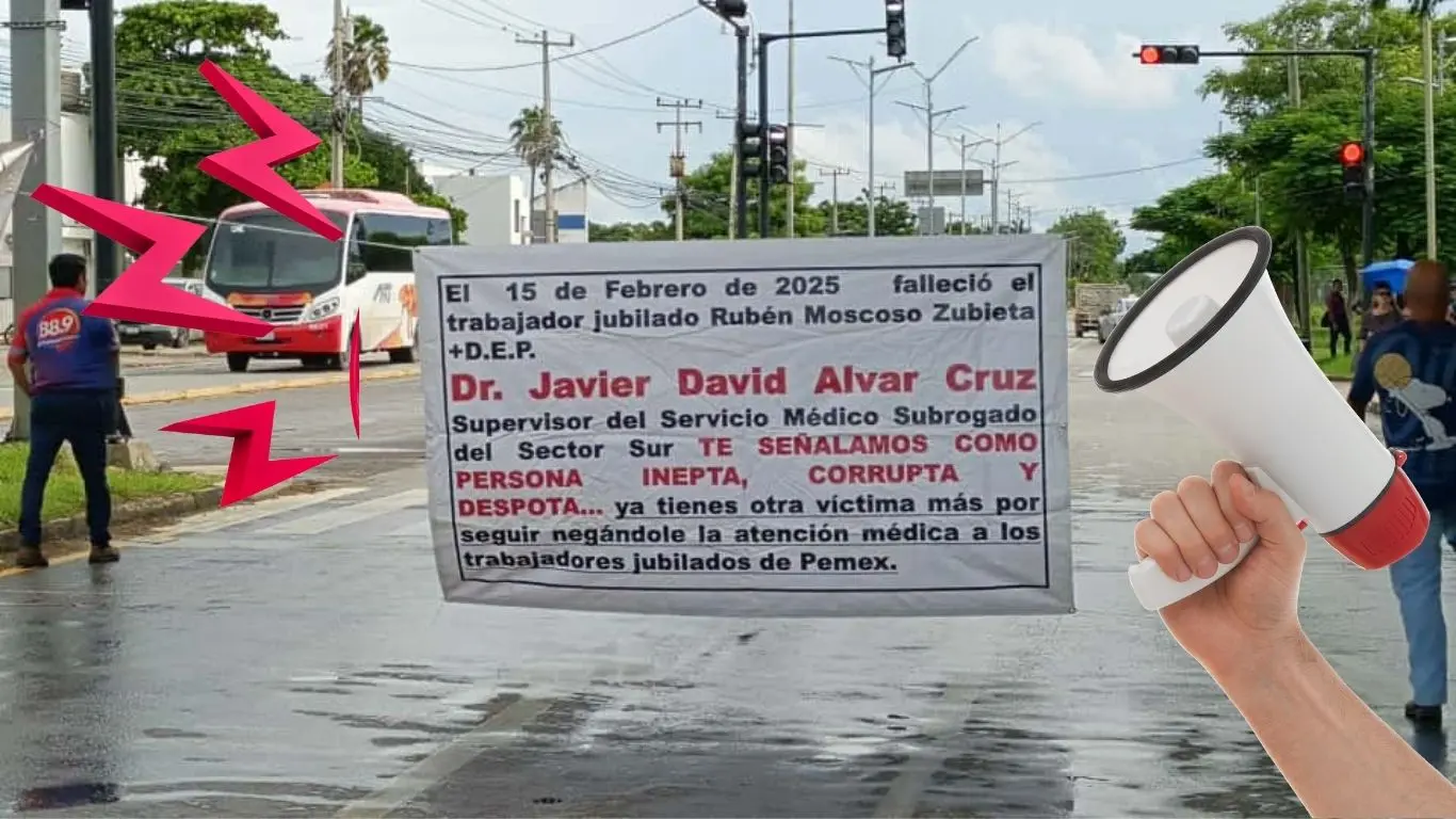 Un grupo de manifestantes de PROSA A.C. cerró esta mañana un carril de la avenida Internacional, a la altura del aeropuerto, para exigir atención médica por parte de PEMEX.