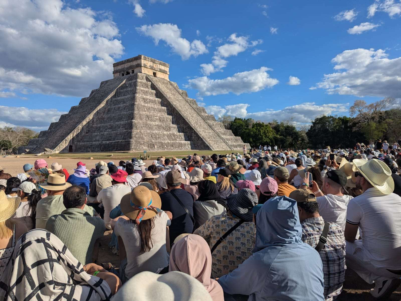 Este 21 de marzo, la zona arqueológica de Chichén Itzá, Yucatán, recibió la visita de más de 8 mil 400 personas, quienes disfrutaron del equinoccio de primavera, un fenómeno arqueoastronómico que representa el descenso de Kukulcán.