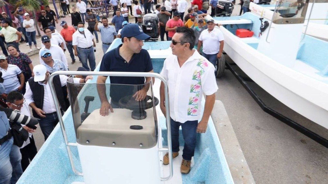 Al constatar la construcción de un parador turístico, Mauricio Vila Dosal, gobernador de Yucatán, encabezó la entrega de cinco lanchas y 33 motores para las embarcaciones dedicadas a la pesca y a la actividad turística en San Felipe, uno de los 106 municipios que integran la entidad.