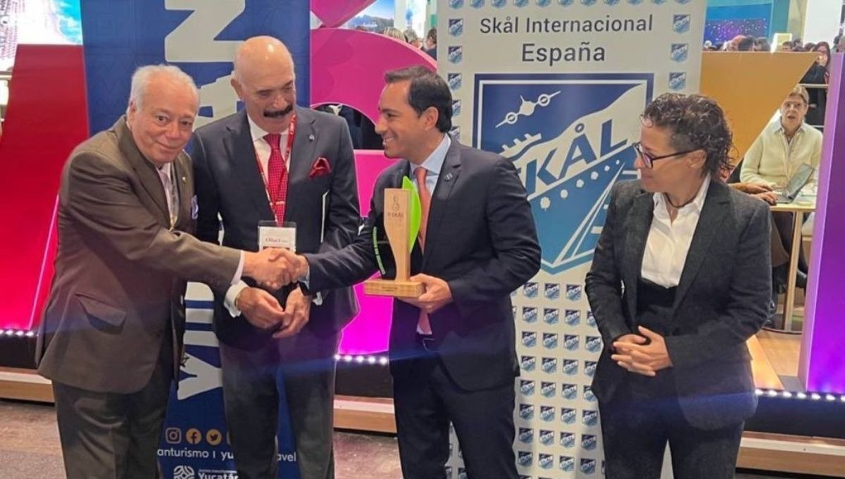 Este viernes 26 de enero de 2024, Mauricio Vila fungió como representante de Yucatán ante el Congreso Mundial de Skal; la asociación turística le concedió el reconocimiento denominado Biodiversidad y Naturaleza; en función de la gala de los Premios Sustentabilidad 2023.