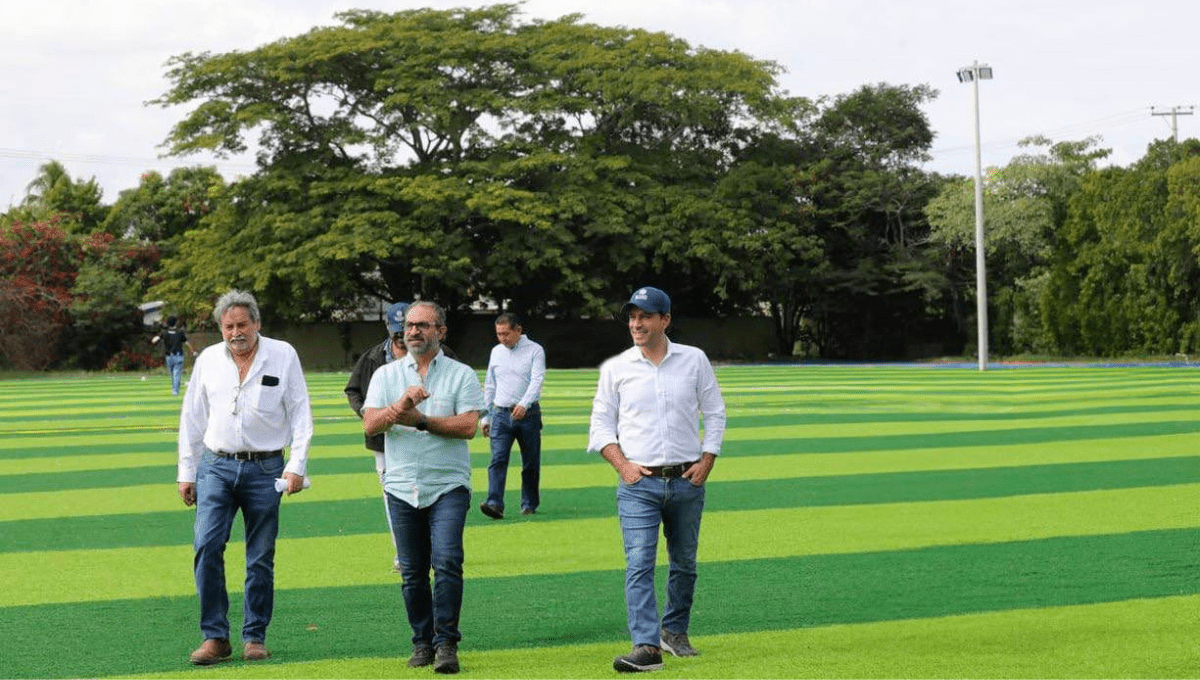 El gobernador, Mauricio Vila, compartió en sus redes sociales el recorrido que realizó por las canchas de fútbol del Complejo Deportivo Kukulcán para supervisar los trabajos de modernización.