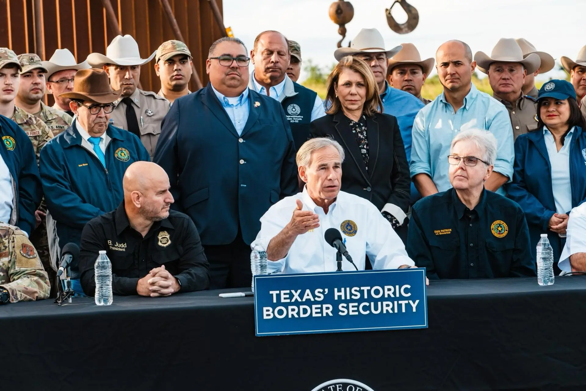 Con unas obras de construcción del muro en la frontera entre México y Brownsville (Texas) de fondo, Abbott firmó un paquete de tres leyes aprobadas en las sesiones extraordinarias de la Legislatura en respuesta a lo que considera una política de “fronteras abiertas” del presidente de Estados Unidos, Joe Biden.